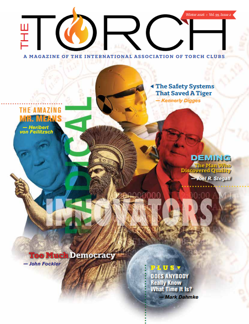 You do not want to miss the stories in the Winter 2026 edition of The Torch magazine. Members can read through these stories in the magazine mailed to their homes or they can go to the International Association of Torch Club’s (IATC) website and read the stories online (you can find the magazine under the Club & Member Access tab). Non-members have access to earlier editions by visiting the IATC website and clicking the link below the images of magazines.